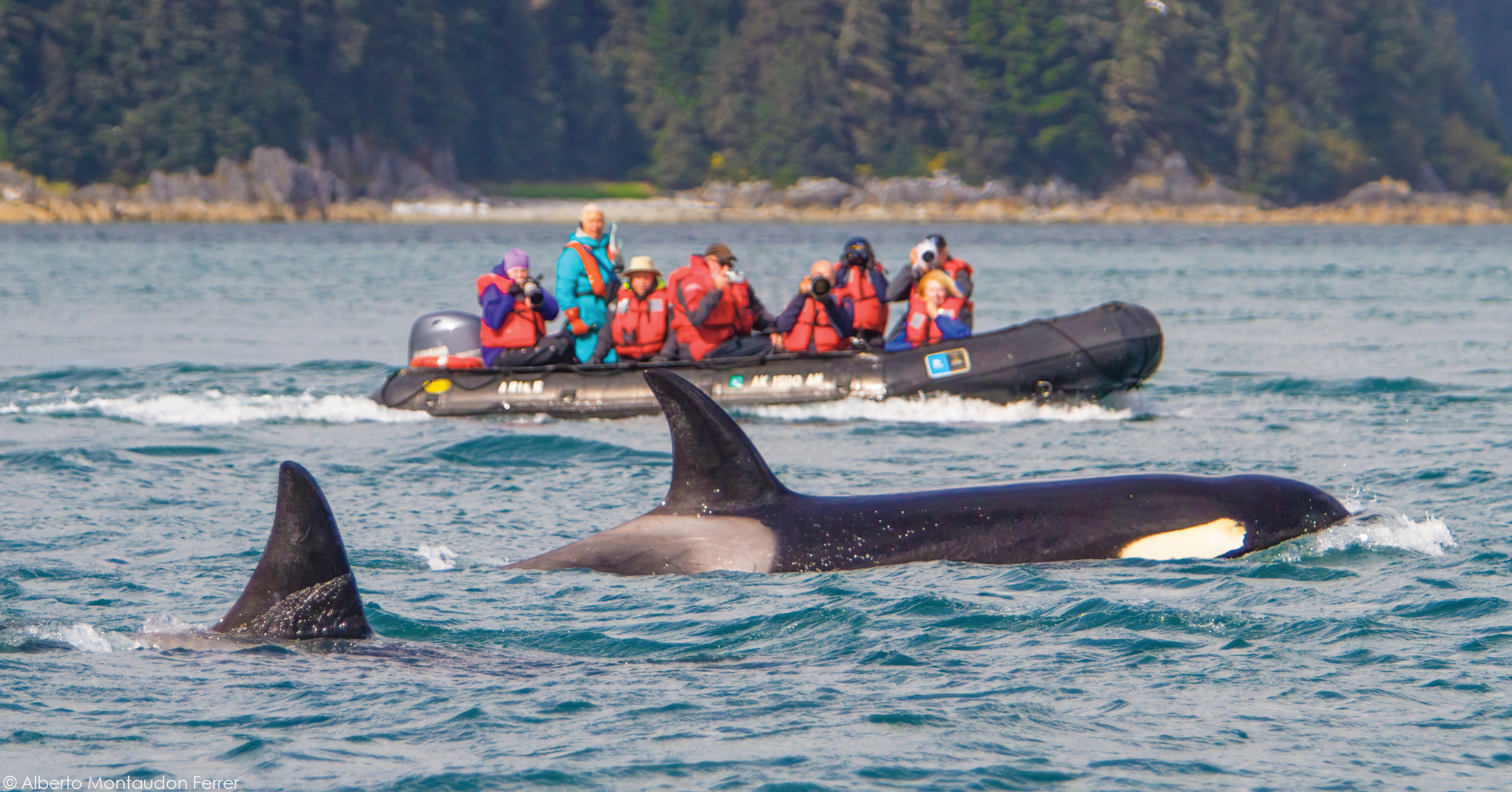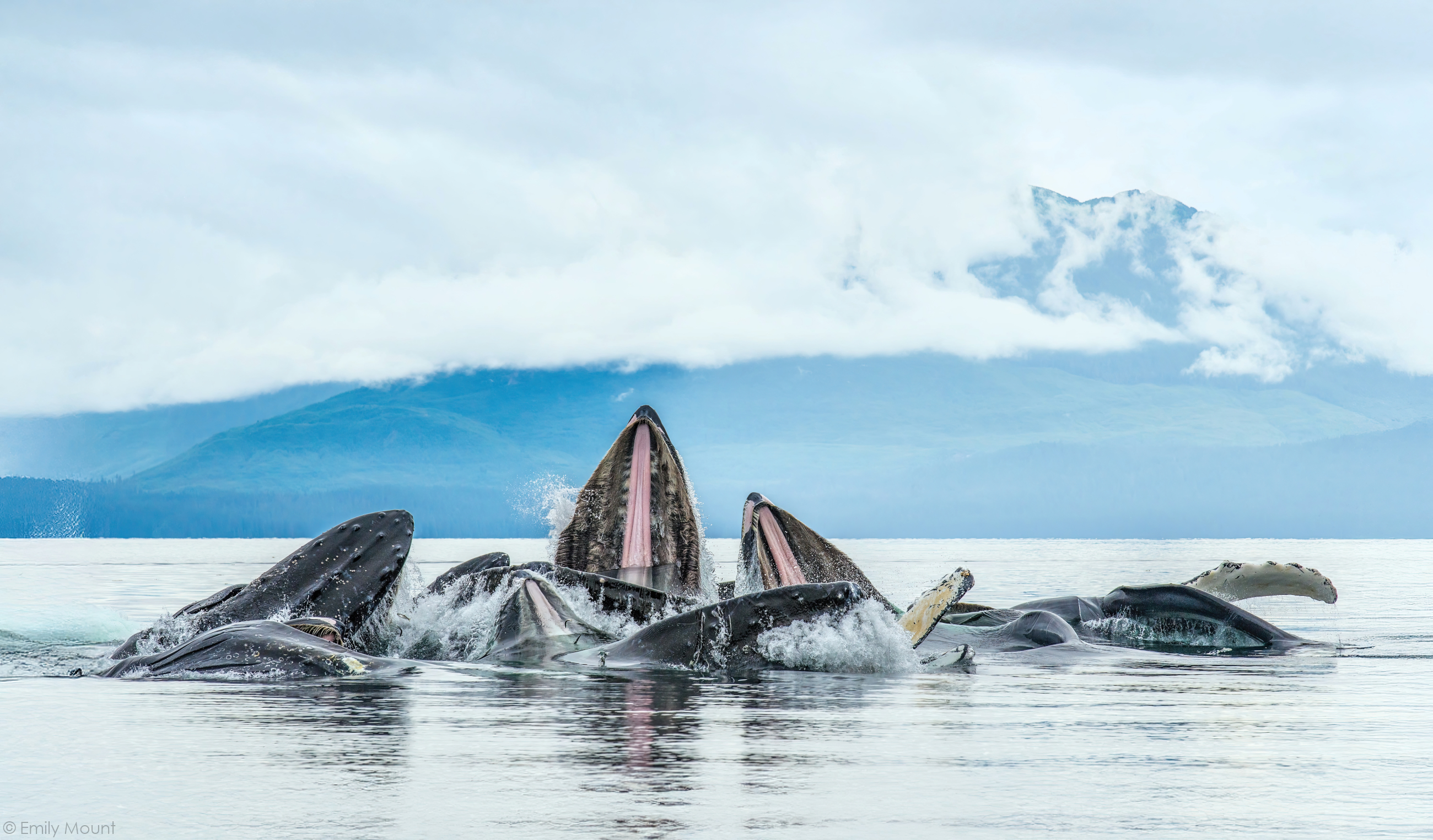 Animal activity booms in the summer months as salmon return to their places of birth up the rivers along the coast. Brown bears can be seen patrolling riverbanks and waiting in the rapids for fish to literally jump into their mouths. Humpback whales bubble net salmon, speeding towards the surface as they lunge, mouth open, swallowing hundreds of fish at a time. Their splashes, gulps and blows create huge splashes of activity against a backdrop of snow-capped mountains.
