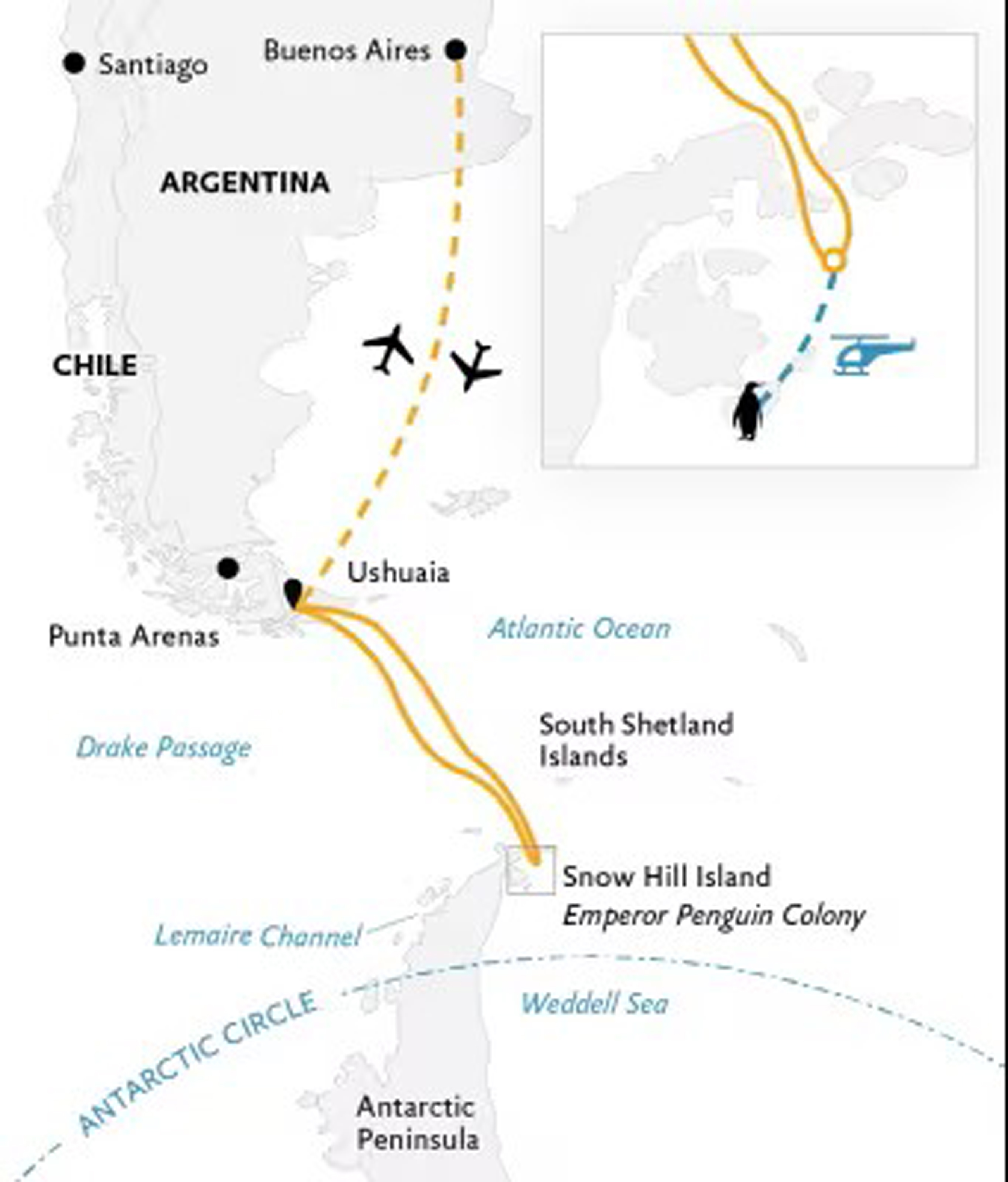 Helicopters provide a great advantage in reaching the emperor penguin colony, but nature rules the itinerary.