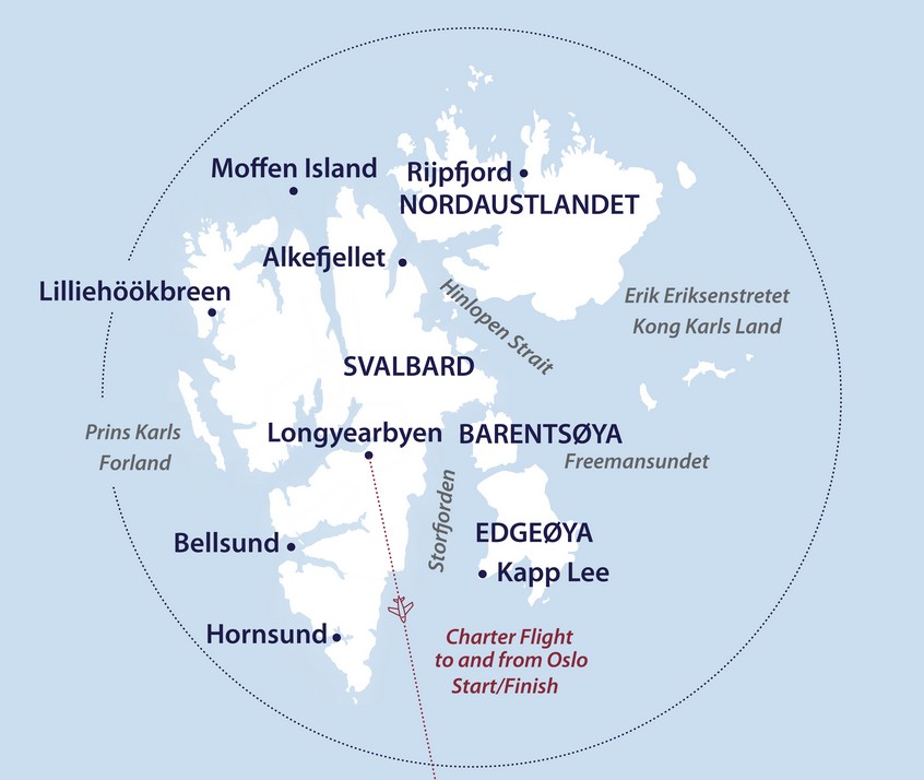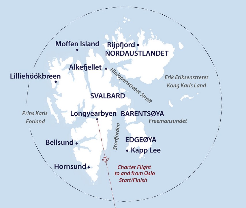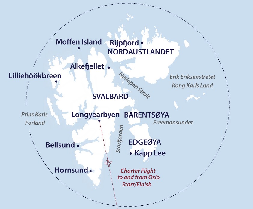 Includes: 1 pre-voyage hotel night in Oslo, return charter flights Oslo-Longyearbyen-Oslo, free Expedition Jacket