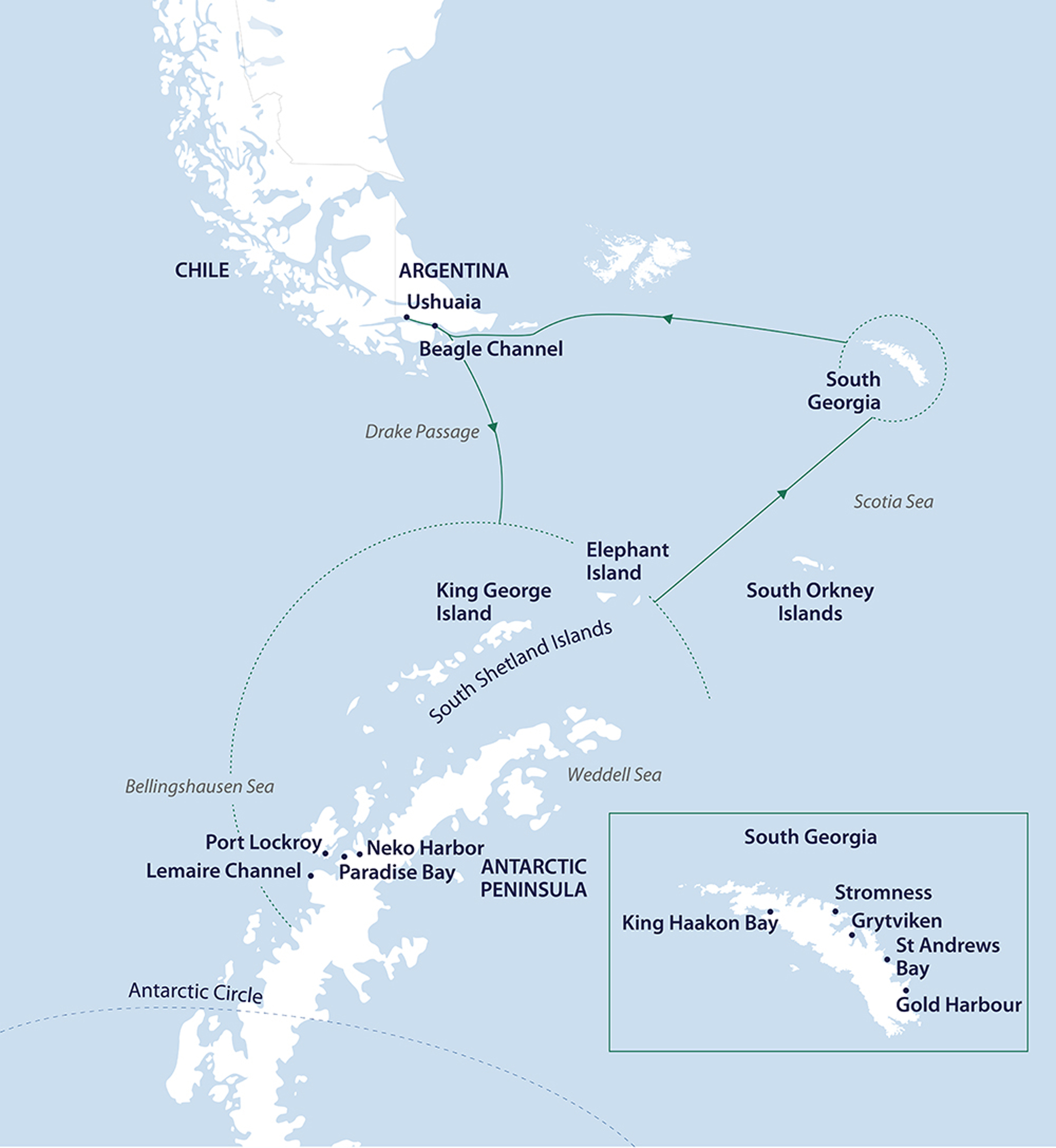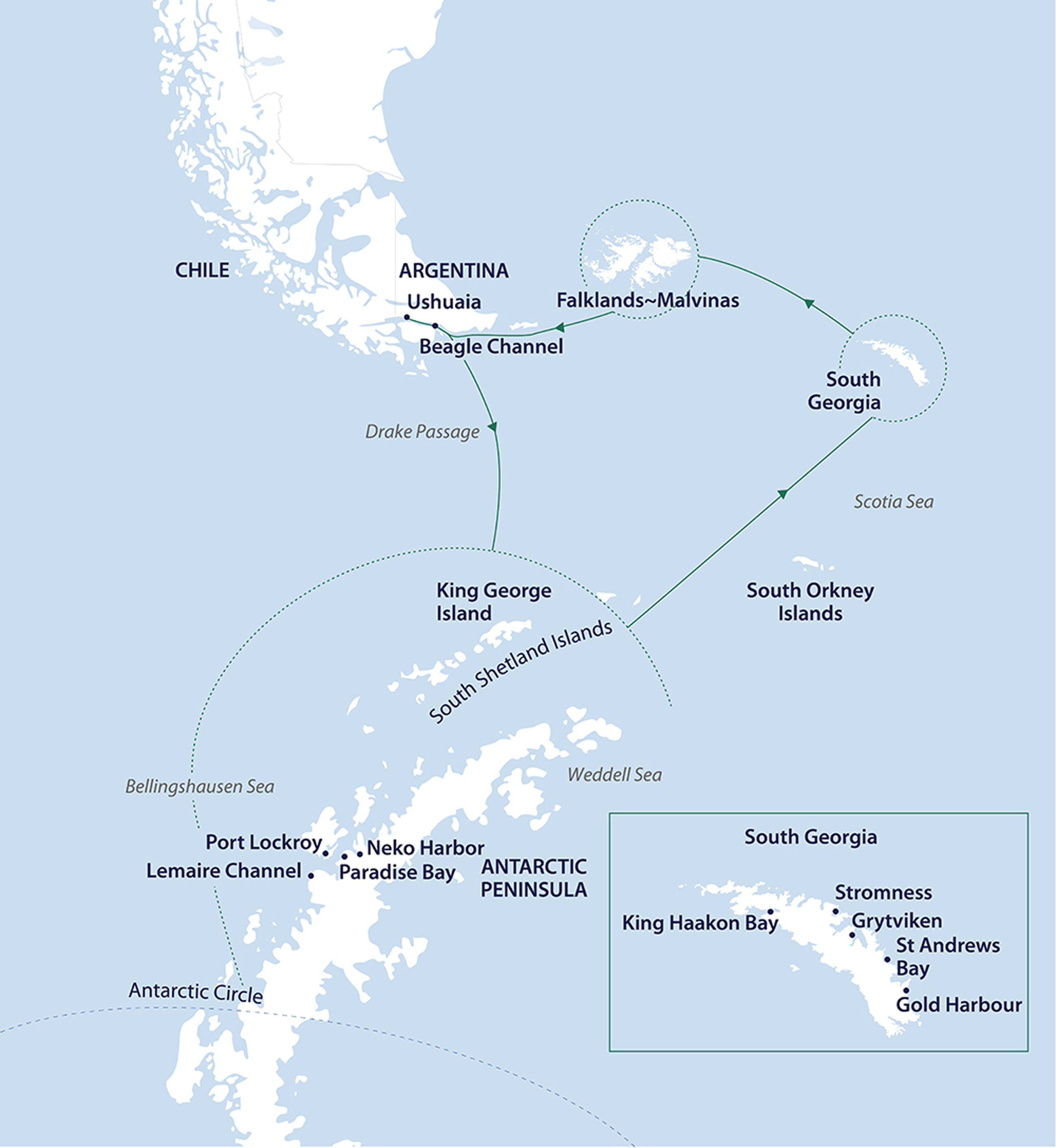 Extended Voyage inc Falklands & South Georgia & Polar Circle