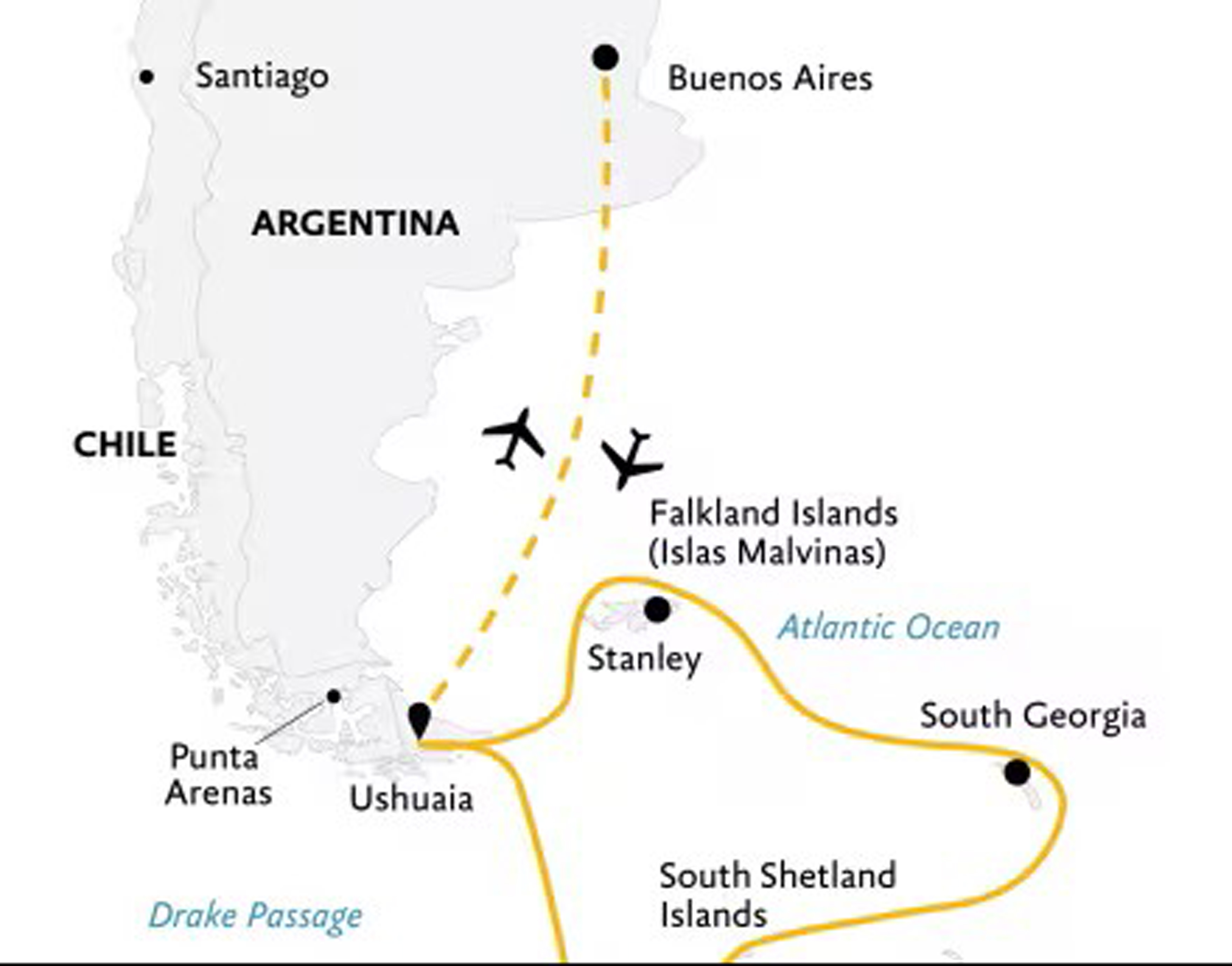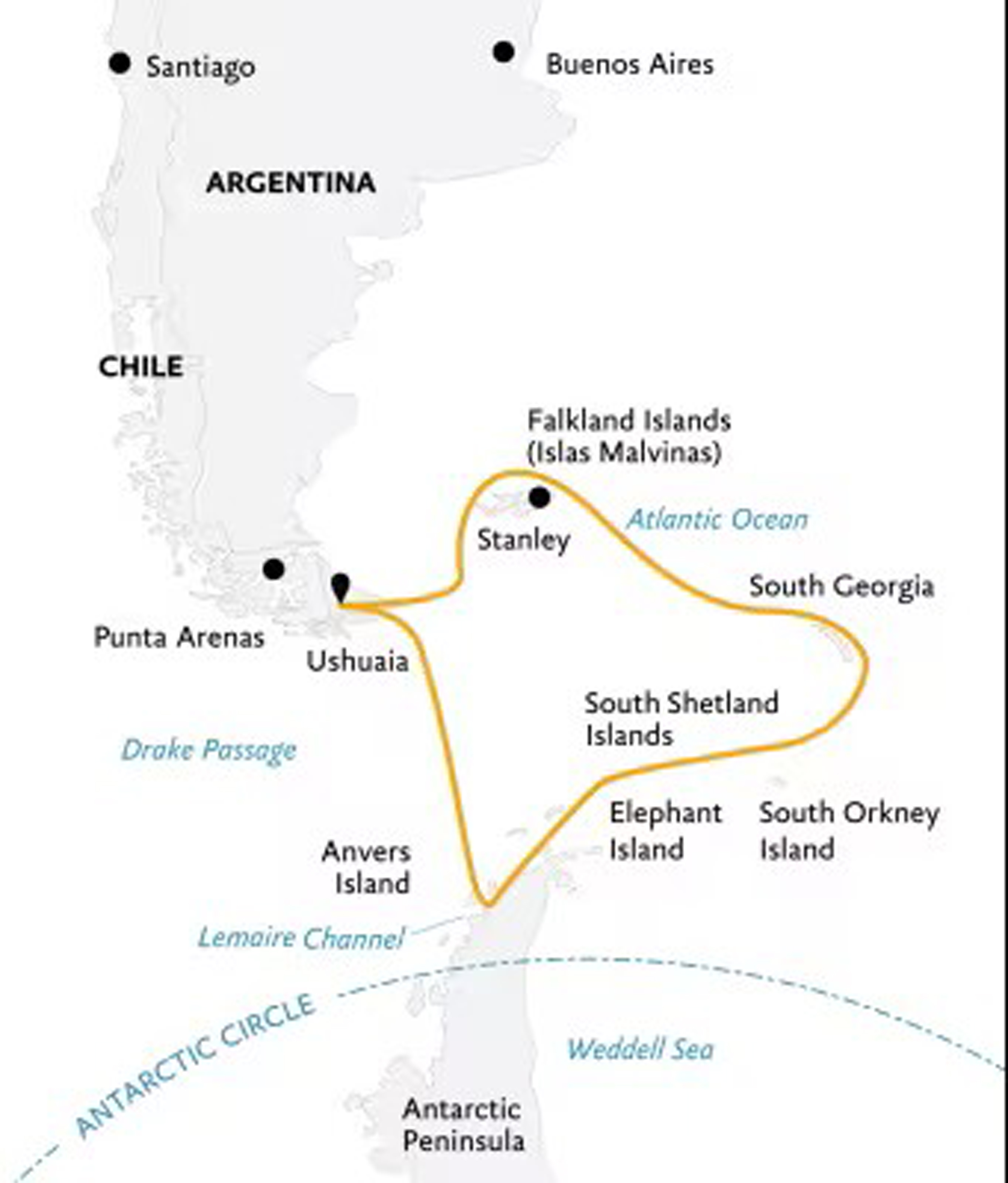 Itinerary does not include Falkland Islands
