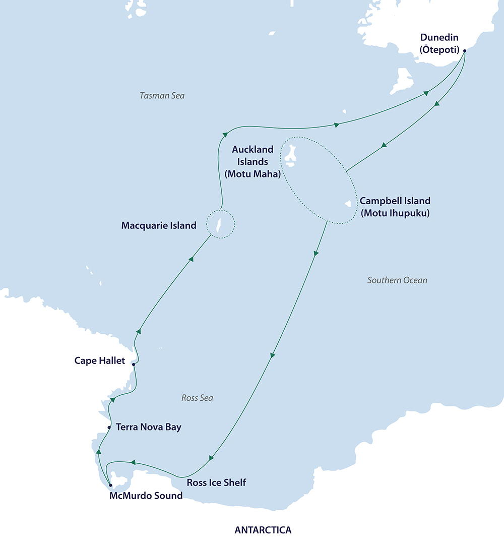 Note: During the voyage, circumstances may make it necessary or desirable to deviate from the proposed itinerary. This can include poor weather and opportunities for making unplanned excursions. Your Expedition Leader will keep you fully informed. Landings at the Subantarctic Islands of New Zealand are by permit only as administered by the Government of New Zealand. No landings are permitted at The Snares.