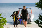 The peak time for diving here is from October to April, when the waters are calm and clear. The island's enthusiastic dive instructor Ted generally takes groups of up to 9 divers out on the dive boat for two morning dives and one afternoon dive to a choice of 9 coral dive sites around the island. Each dive site is located on a gradual drop off 5 - 35 metres into the ocean depths. Diving equipment can be hired, while snorkelling gear is provided free of charge from the PADI Dive Centre on site. From the age of 10, children and adults can enrol in dive courses and partake in diving excursions - and what better place to learn! Kayaks are also available free of charge for guests use from the Dive centre.