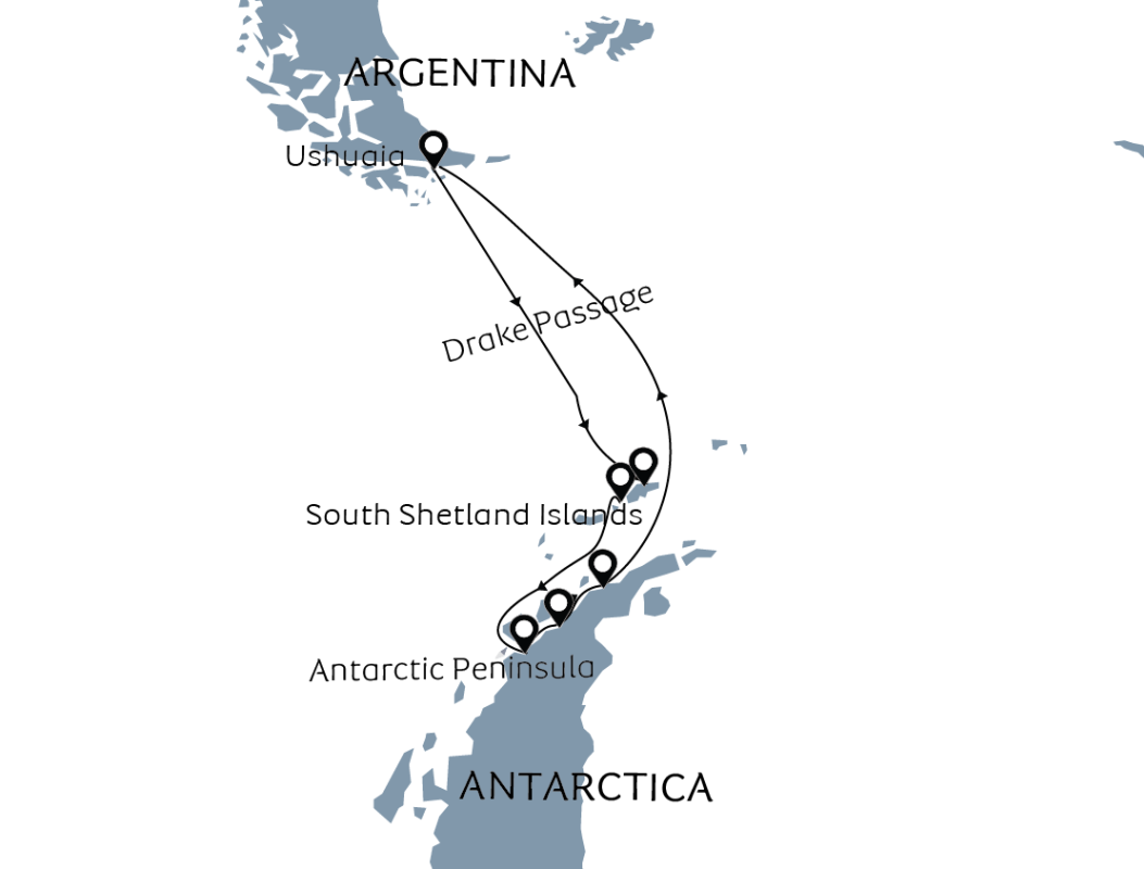 This is a sample only based upon an 11 day voyage. The final itinerary will be determined by the Expedition Team and is influenced by local conditions, like ice and weather - in particular actual or anticipated headwinds affecting crossings of the Drake Passage.