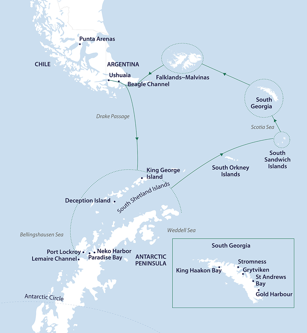 Ushuaia - South Sandwich Islands - Antarctica - Falklands - South Georgia - Ushuaia (24 Days)