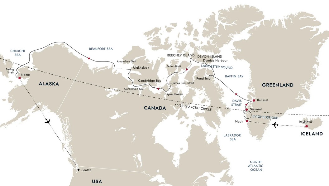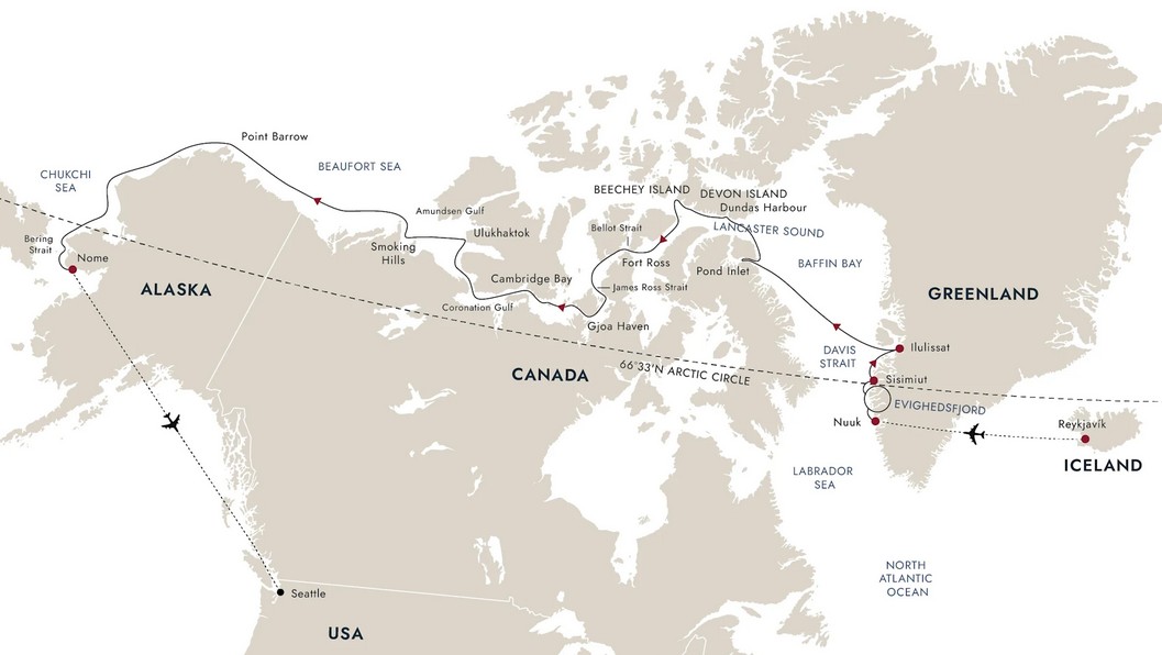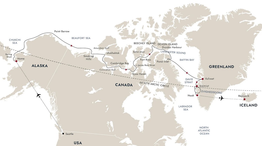 Seattle - Nome - Northwest Passage - West Greenland - Nuuk - Reykjavik (26 Days)