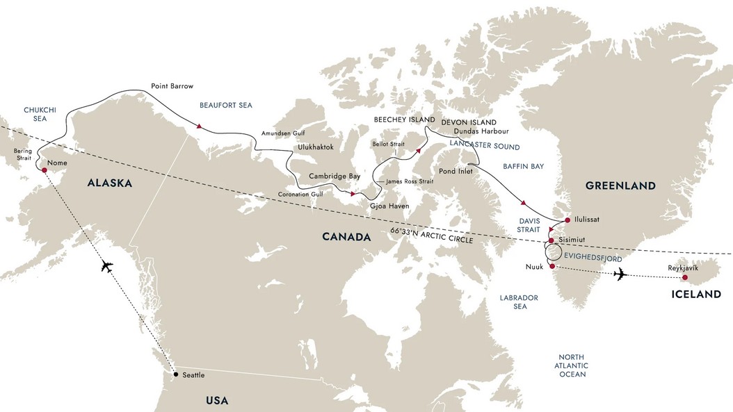 Seattle - Nome - Northwest Passage - West Greenland - Nuuk - Reykjavik (25 Days)