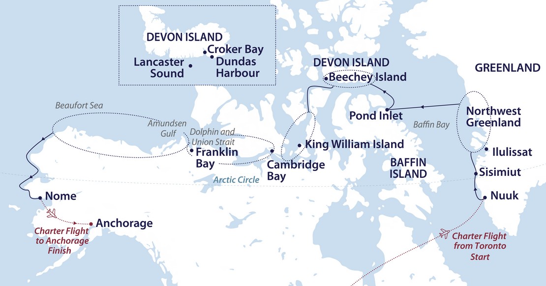 Toronto - Nuuk - West Greenland - Northwest Passage - Nome - Anchorage (29 Days)