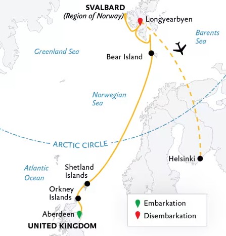 Aberdeen - Shetland Islands - Bear Island - West Spitsbergen - Longyearbyen - Helsinki (17 Days)