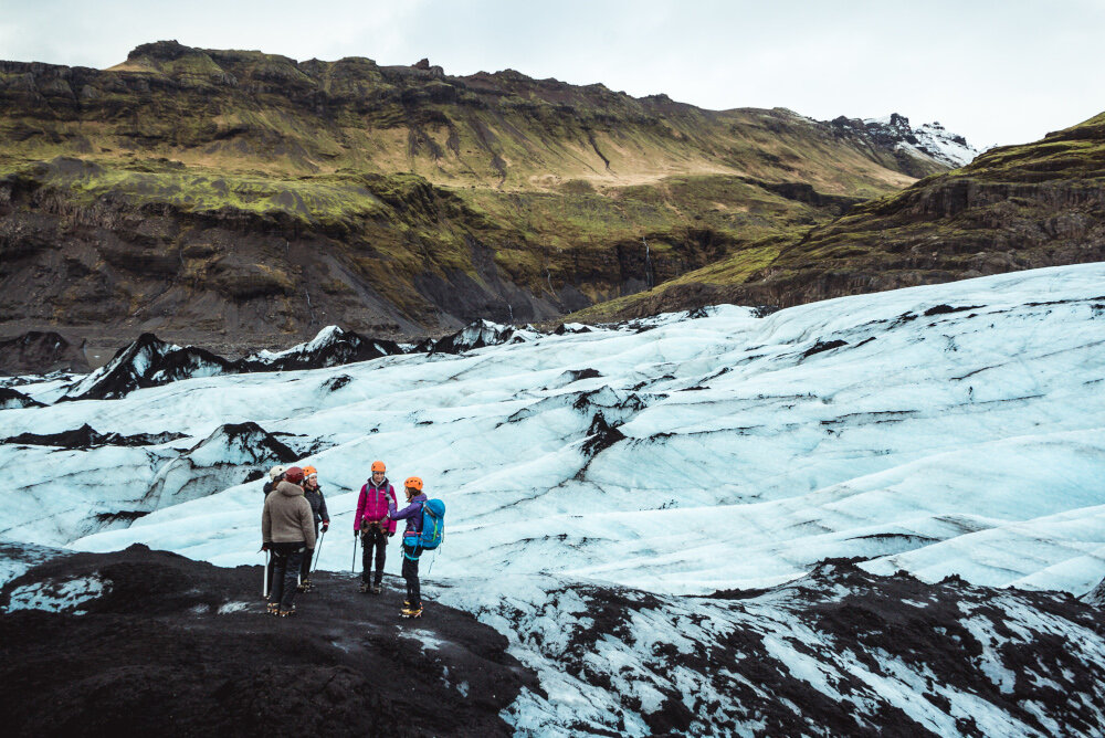 Sólheimajökull is an outlet glacier of Mýrdalsjökull glacier, Iceland’s 4th biggest glacier. The glacier tongue is a rugged, raw and ever changing hub of ancient frozen water; truly a phenomenal place. The day will start with an introduction to equipment and safety instructions. You will be provided with all the tools that you need for your time on the glacier: ice axes, crampons, helmets and safety lines and, of course, your guides will always make sure that you are safe on the ice.