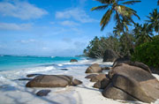 Anse Lascars beach is located within a picturesque cove on Silhouette's eastern side. It is a glorious white sandy beach, framed by granite boulders and palm trees, while shells and corals line the shore. It is best accessed via the footpath from La Passe. The beach is renowned for being the final resting place of 30 Arab sailors, whose dhow was wrecked on the island years before it was originally settled on by man. It is believed that the sailors' ancient tombs are situated in the vegetation behind the beach. It is an ideal beach for both swimming and sunbathing, with a convenient restaurant located nearby.